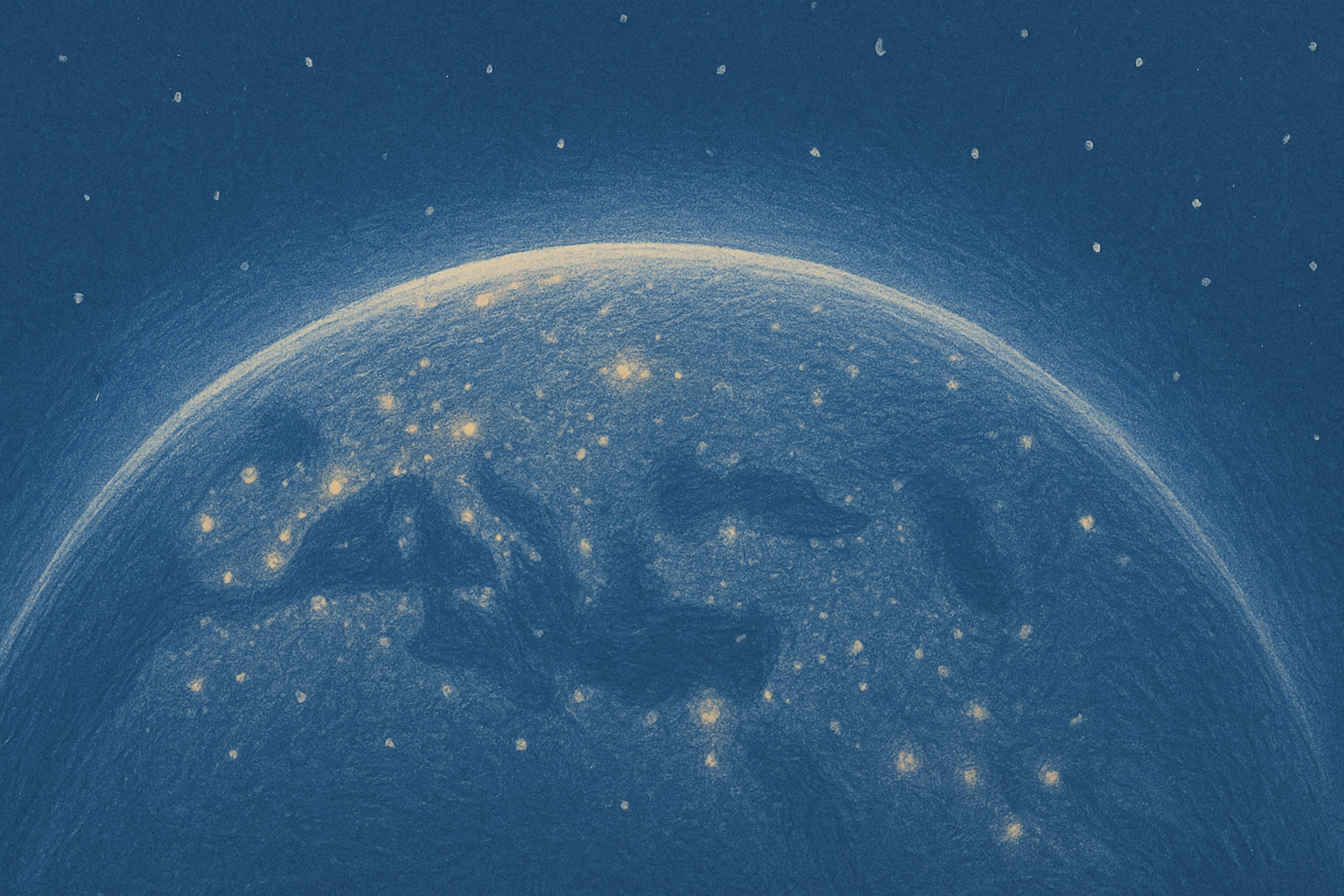 Semiesfera terrestre nocturna; luces aparecen y conectan ciudades.