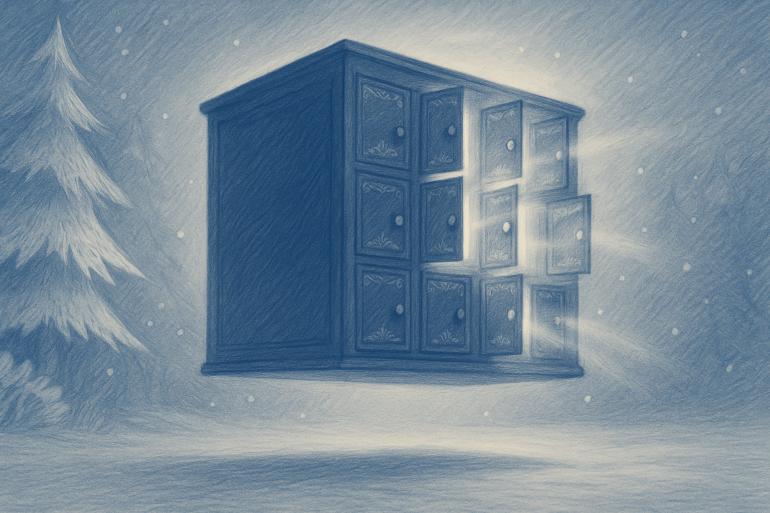 El contraste frío–cálido guía la mirada: exteriores en gamas azules; interiores en ambar dorado para cada revelación. Las persianas numeradas y los barandales generan ritmo; el halo de luz y pequeños motion cues (suave “glow”, copos, apertura) dan sensación de magia sin estridencias.